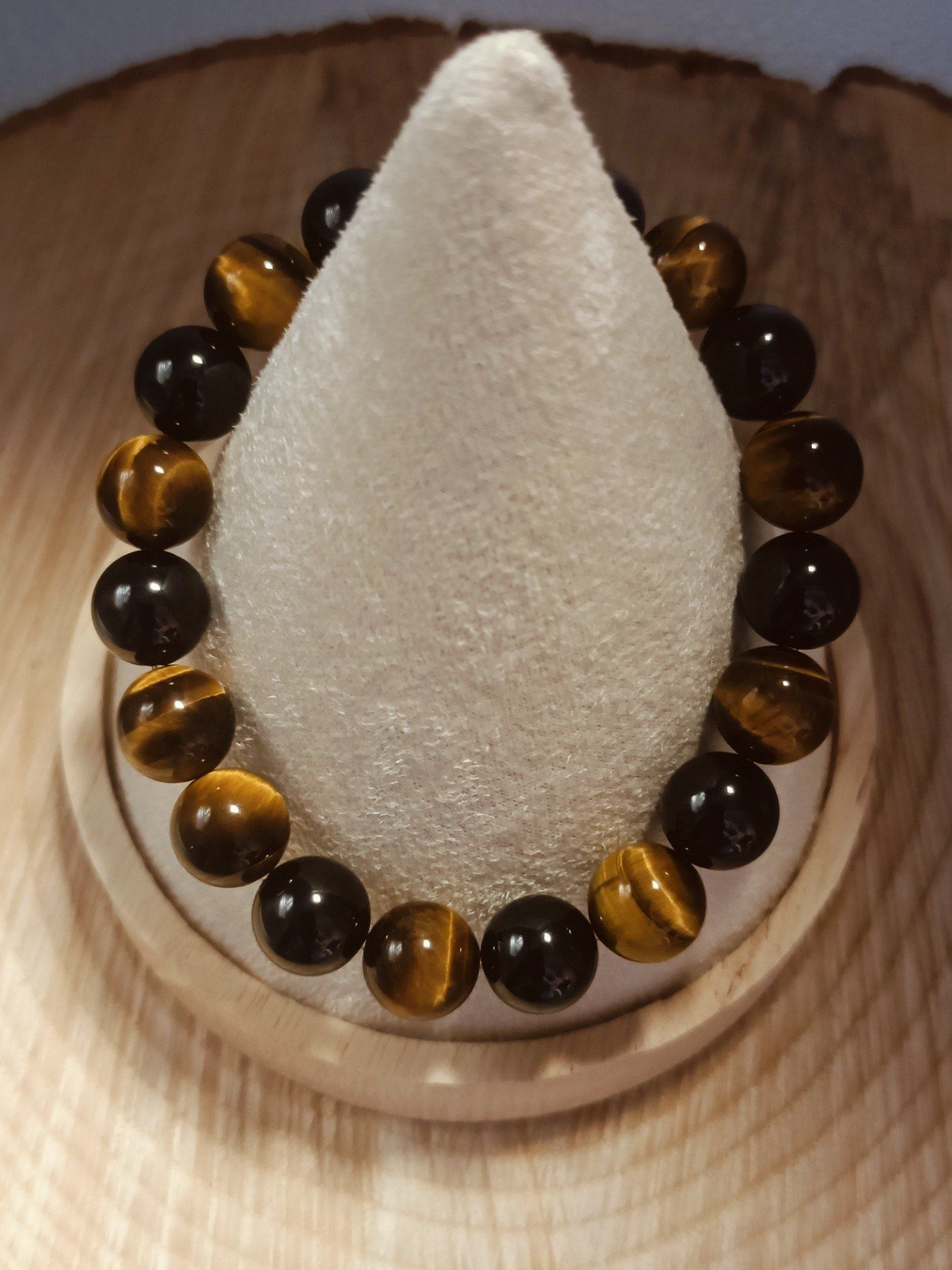 Le bracelet en spinelle noire et œil de tigre est réputé pour ses puissantes propriétés de protection, d’ancrage et de renforcement de la confiance en soi en lithothérapie