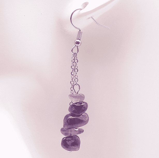 Boucles d’oreilles baroques en pierres naturelles : améthyste, aventurine verte, howlite, obsidienne noire, grenat rouge et quartz rose. Bijou énergétique et harmonisant.