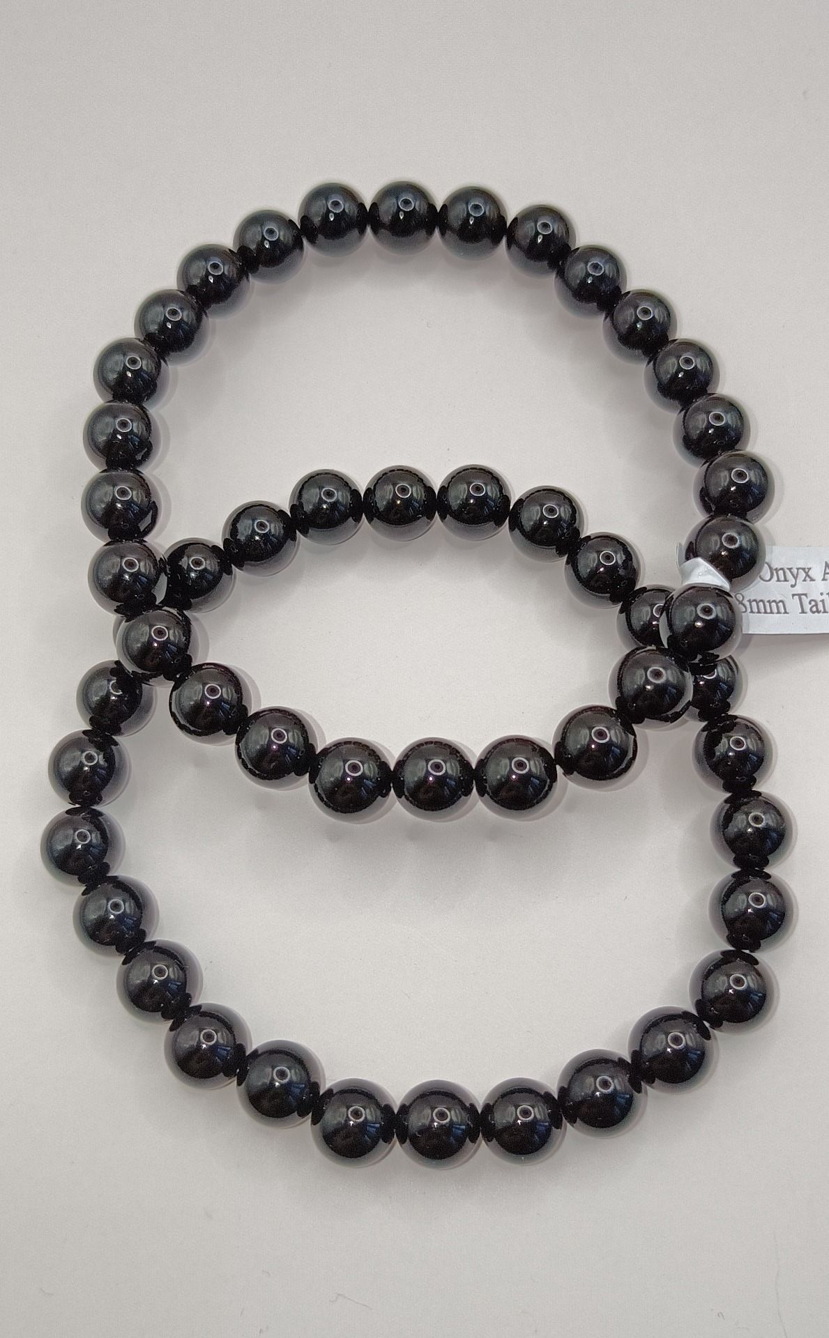 Bracelet boule 8 mm en onyx A, pierre de protection et d’ancrage. Bijou naturel favorisant stabilité, force mentale et sérénité.