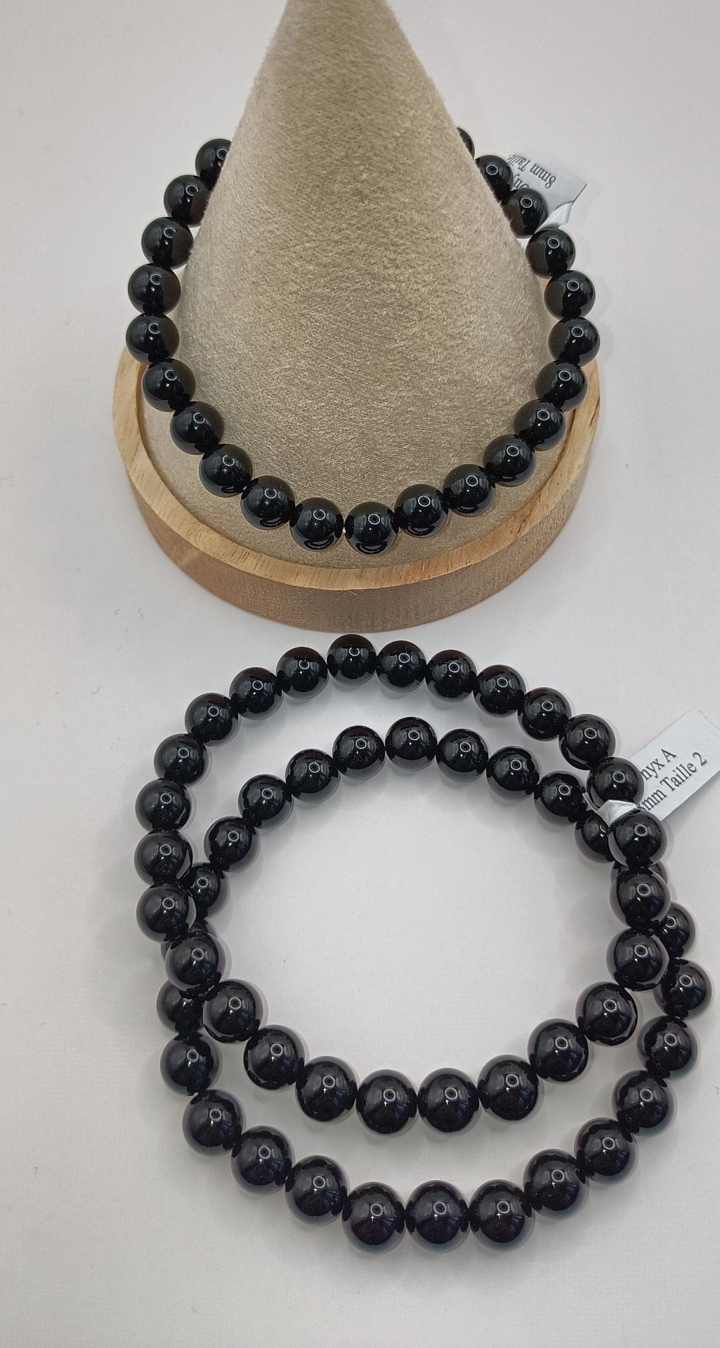 🖤✨ Bracelet boule 8 mm – Onyx (Qualité A) – Taille 2