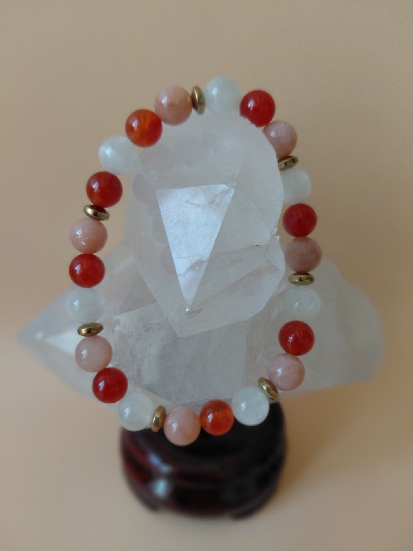 Bracelet en pierres naturelles pour l’équilibre féminin et le cycle. Cornaline et pierre de lune pour apaiser les douleurs menstruelles et harmoniser les émotions.