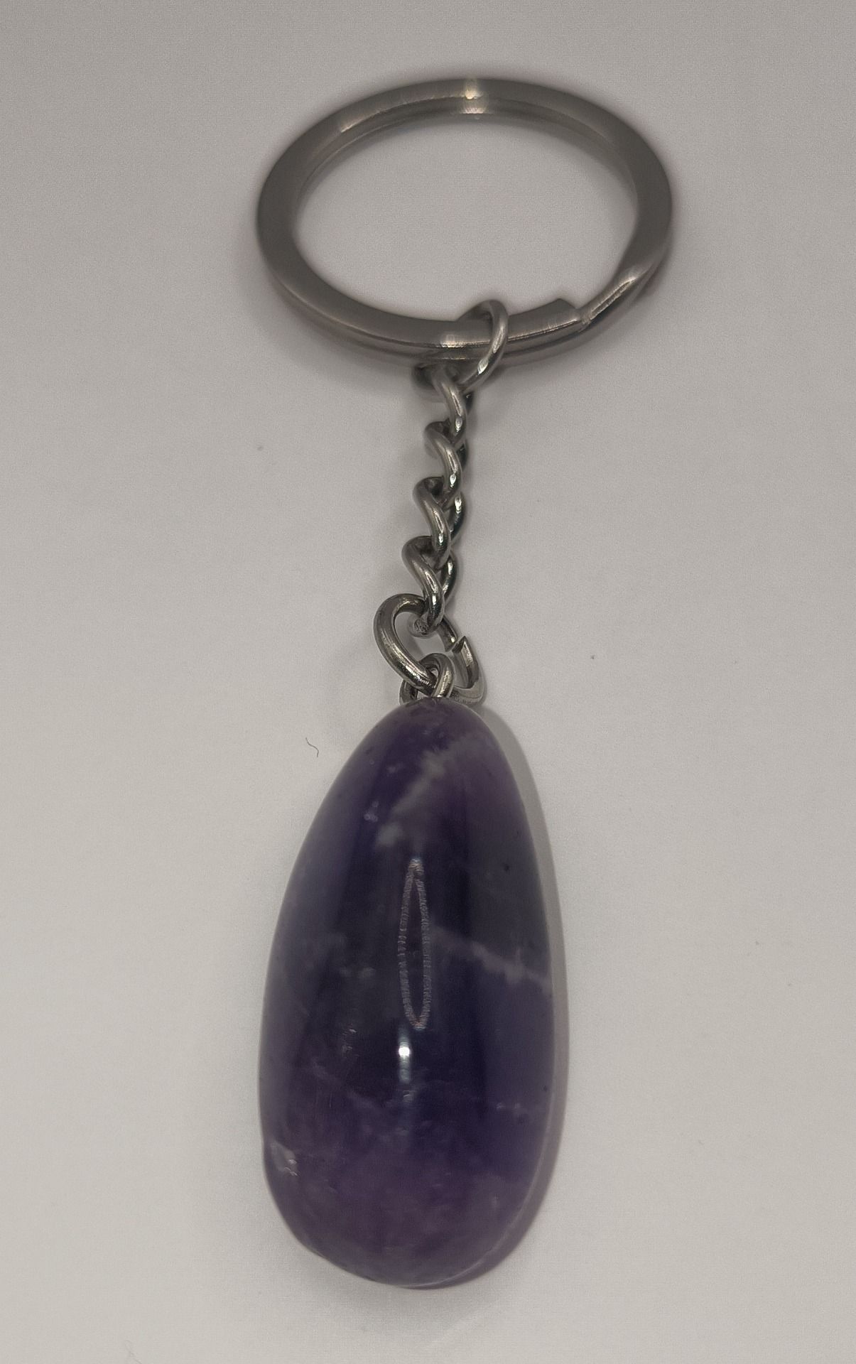 Porte-clés en améthyste du Brésil A pierre roulée, pierre d’apaisement et de sérénité. Accessoire en pierre naturelle favorisant calme et équilibre.